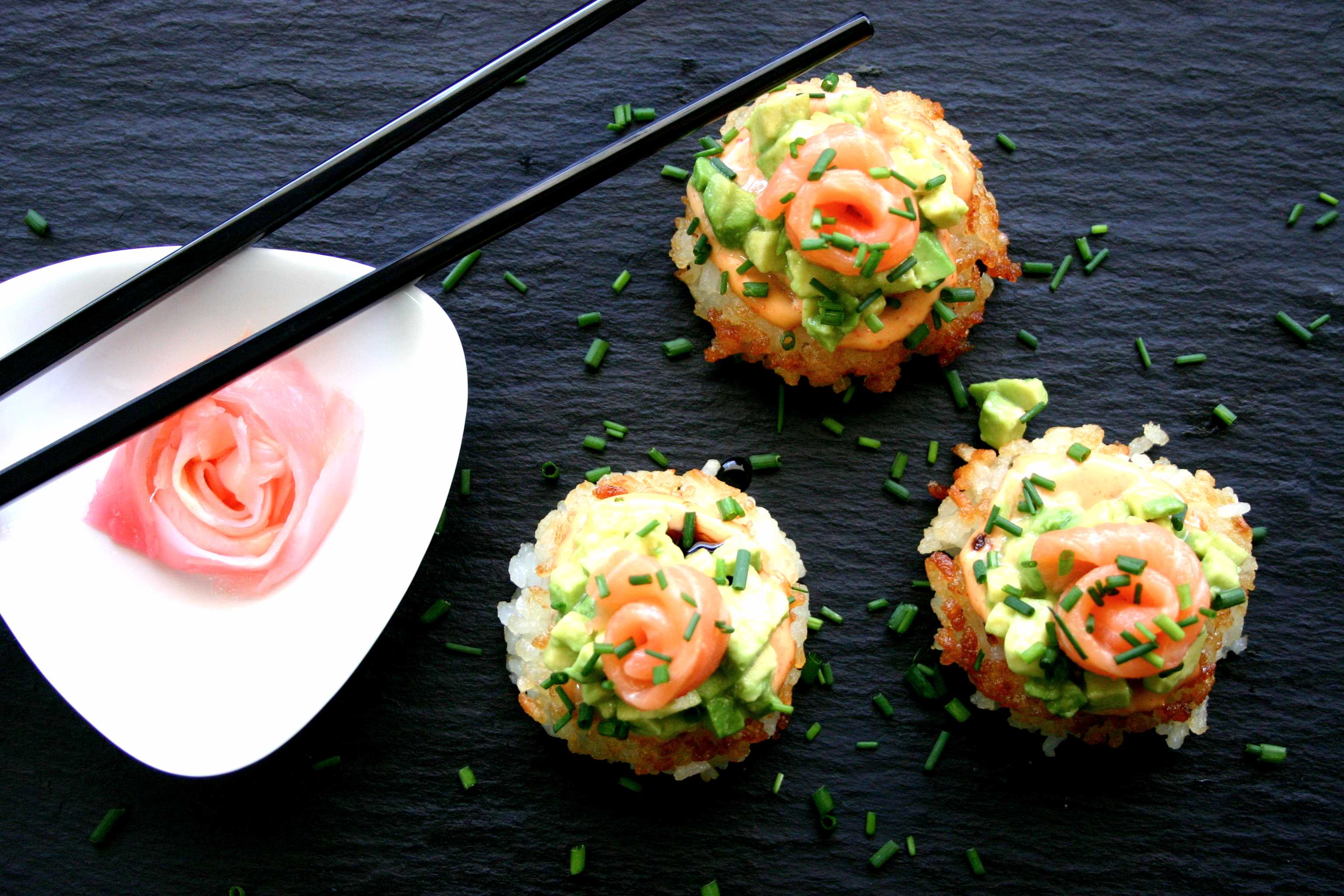 September 1, 2016September 1, 2016 Sushi pizza- sirracha-mayo, avocado and salmon with pickled ginger