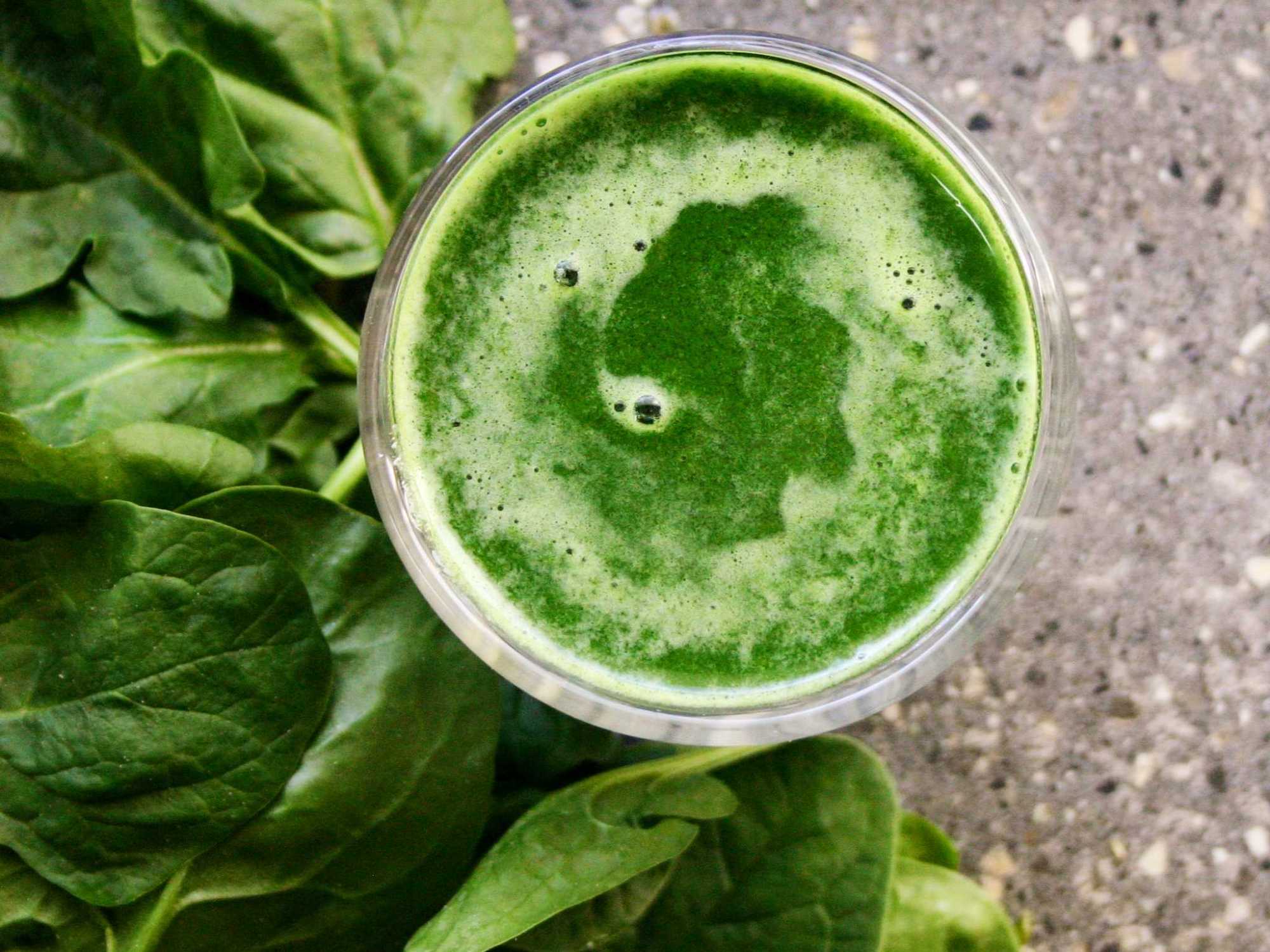 Green Juice with Spinach, Mint, Lime, Celery, Ginger, Cucumber and Apple
