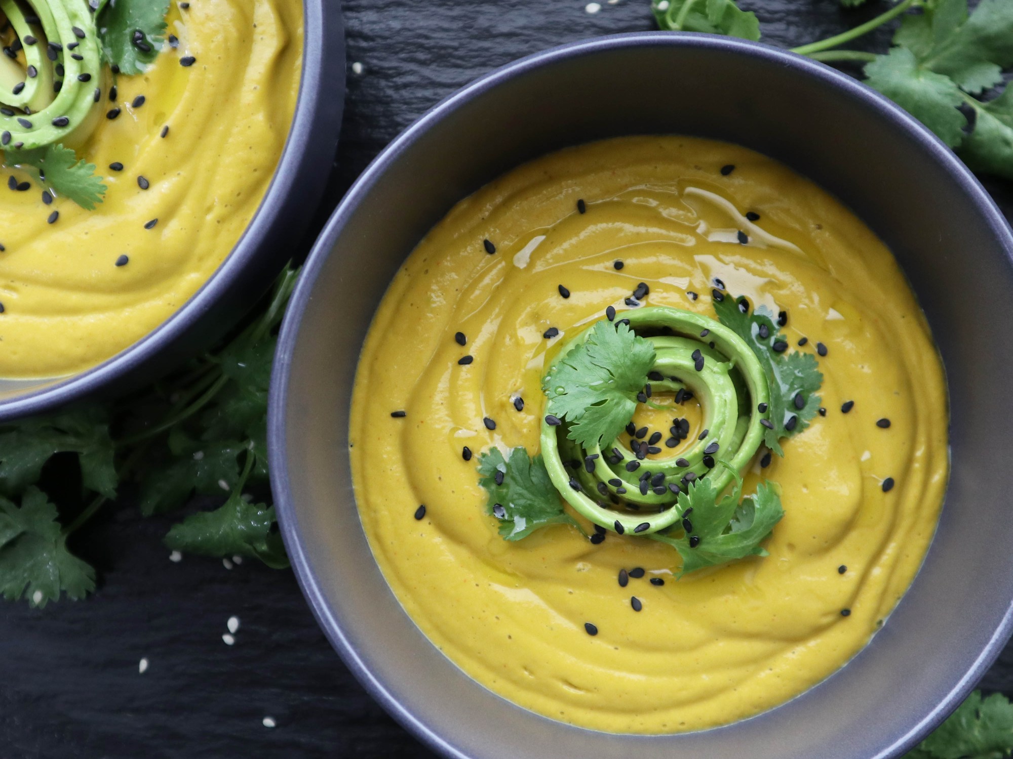 Chilled Carrot and Avocado Soup, with a warm chili kick